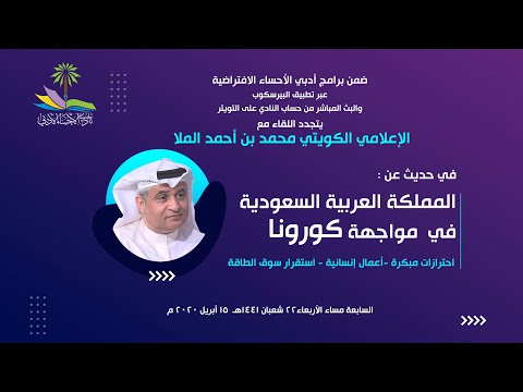 جهود السعودية في مواجهة كورونا للإعلامي محمد الملا ضمن برامج أدبي الأحساء الافتراضية Youtube