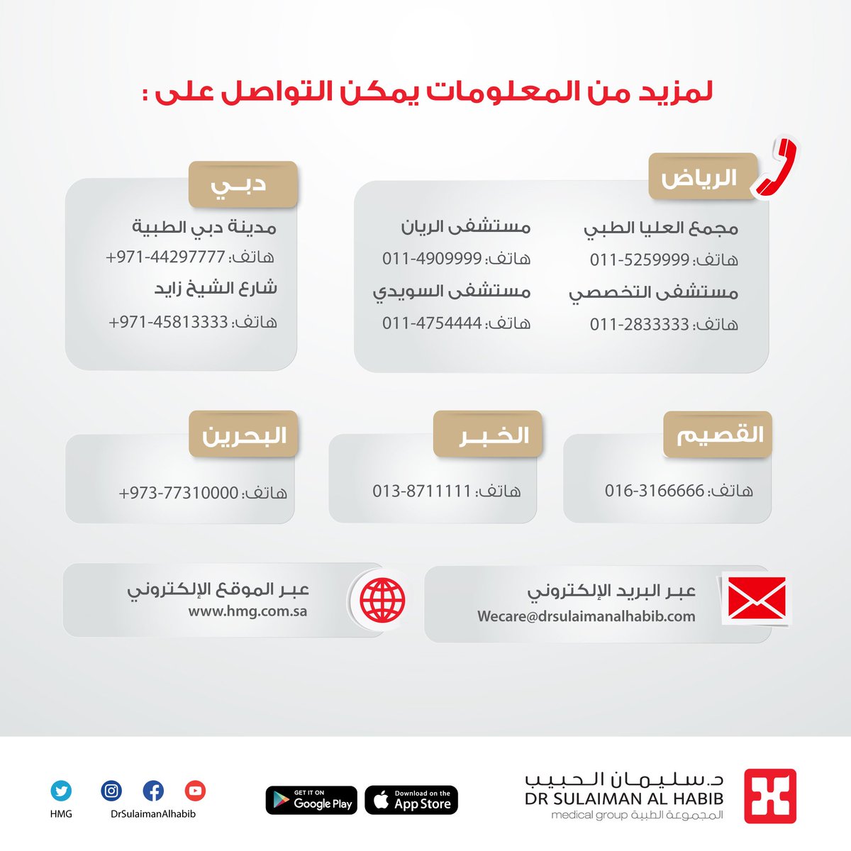 مجموعة د سليمان الحبيب الطبية On Twitter Han X6 نرجو التواصل مع قسم المواعيد للفرع الذي تم حجز موعد به ارقام الهواتف في الصورة المرفقة شكرا لك Http T Co Cjrqitiyqb