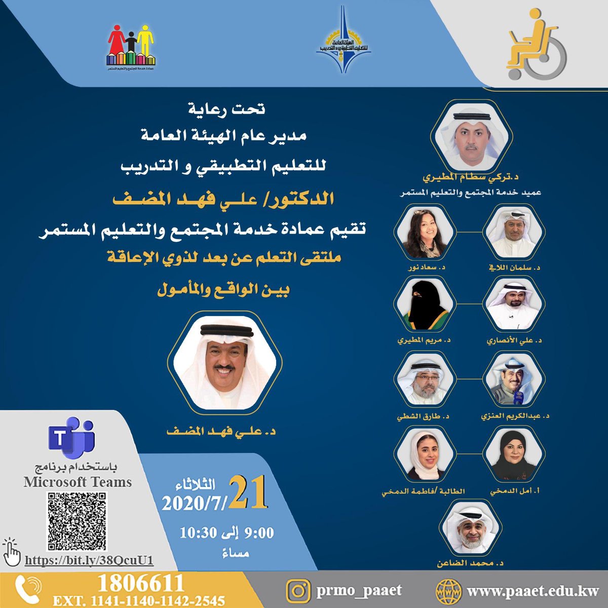 التطبيقي تنظم ملتقى التعليم عن بعد لذوي الإعاقة 21 الجاري