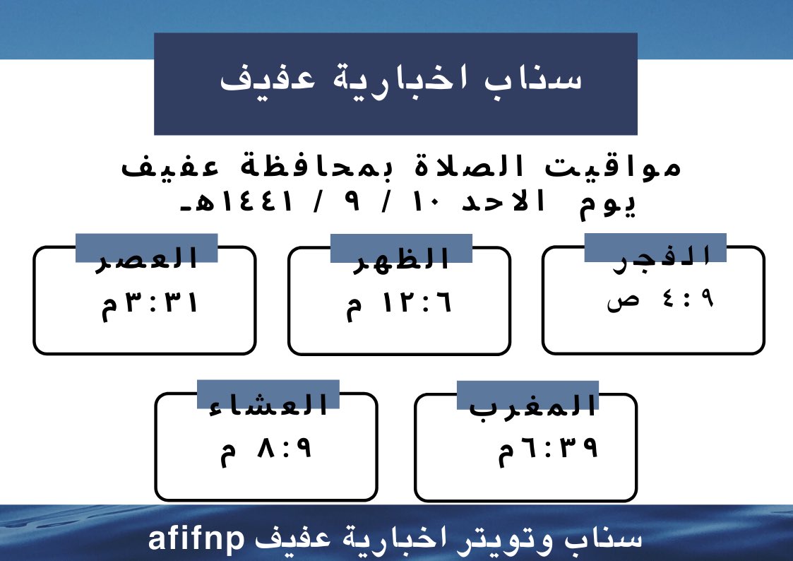 إخبارية عفيف On Twitter مواقيت الصلاة بمحافظة عفيف اليوم الاحد ١٠ ٩ ١٤٤١هـ للمزيد من الاخبار والتغطيات عبر سناب اخبارية عفيف Https T Co 20t4jj3bfe Https T Co 4wuskquzpp