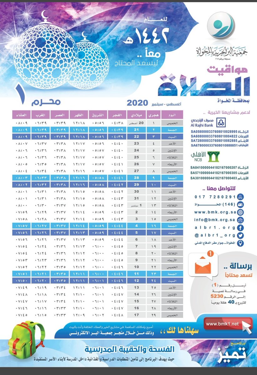 بندر الع مري On Twitter جميع مطبوعات Albr1 Org التقويم السنوي 1437 و مواقيت الصلاة لمحافظة المخواة متوفرة بالجمعية زورنا وخذ نسختك Http T Co Vvtnslrd8m