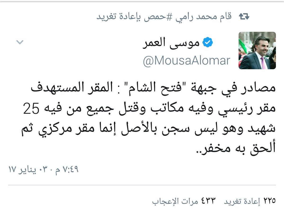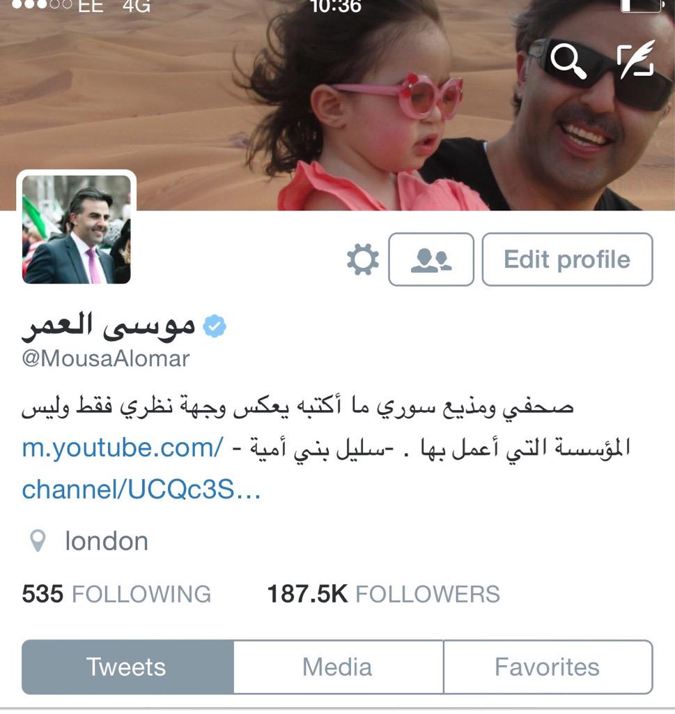موسى العمر تويتر. ويقول موسى العمر في الفيديو الذي نشره عبر حسابه في موقع التواصل الاجتماعي تويتر اتصل فيني ودعاني وقال لي تعال عازمك على حلويات احتفالا بنـ ـفـ ـوق قاسم سليماني. We would like to show you a description here but the site won t allow us. بعد أن وصلت لندن بـ10 أيام قادم ا من الخليج قبل إغلاق المجالات الجوية بدأت أعاني آلام ا وأوجاع ا شديدة توزعت على جسدي مع درجات حرارة عالية تم إسعافي للمشفى ليخبرني الأطباء. وكتب العمر في تغريدة على حسابه في تويتر.