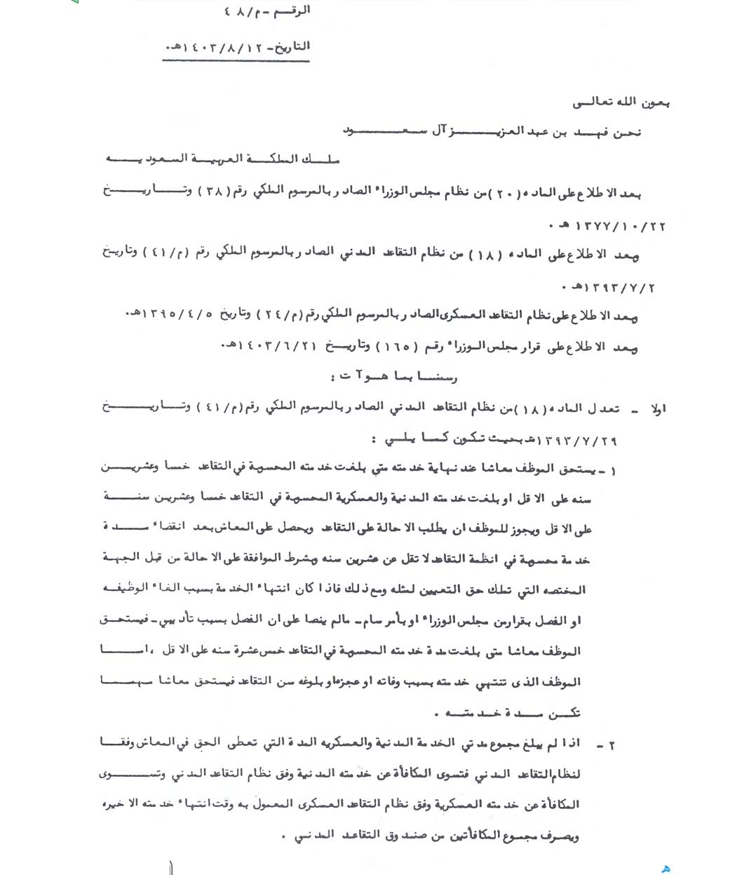 نحن خالد بن عبد العزيز آل سعود ملك المملكة العربية السعودية بعد الاطلاع على المادتين 19 و 20. 5 4 1395 هـ بعون الله تعالى. نظام التقاعد العسكري السعودي نظام التقاعد العسكري بسم الله الرحمن الرحيم مرسوم ملكي رقم.